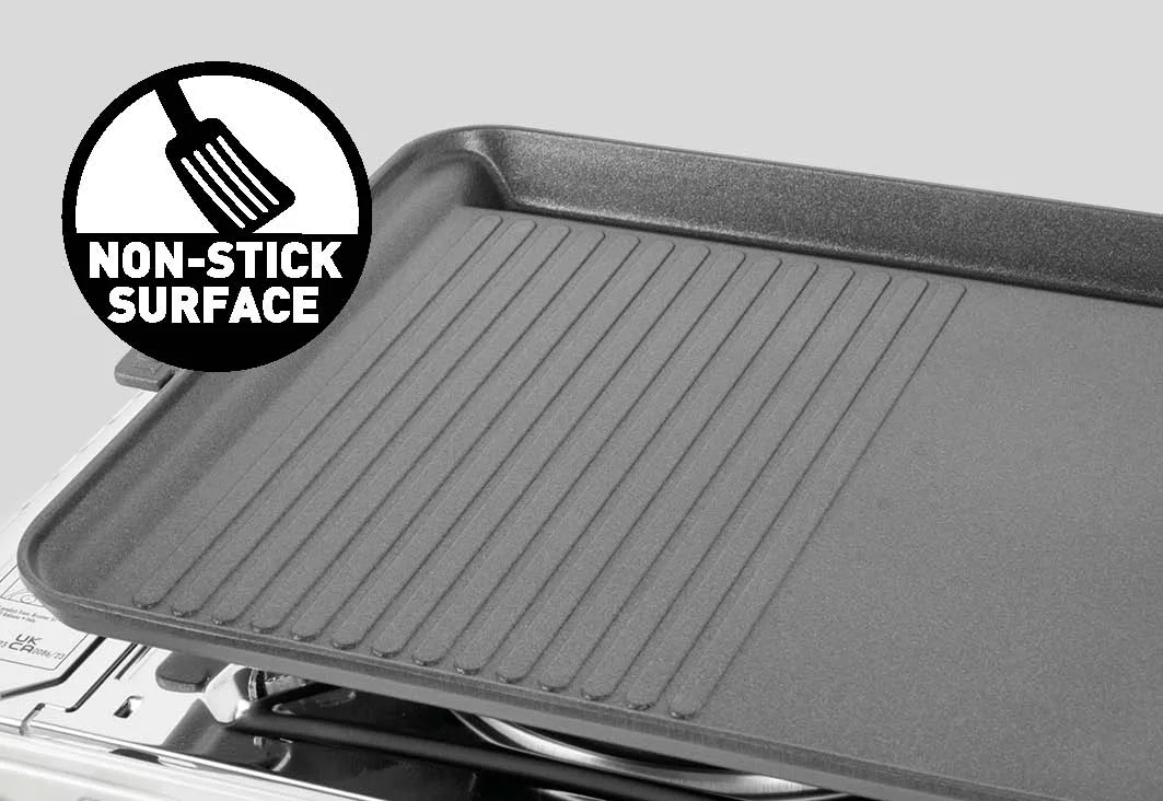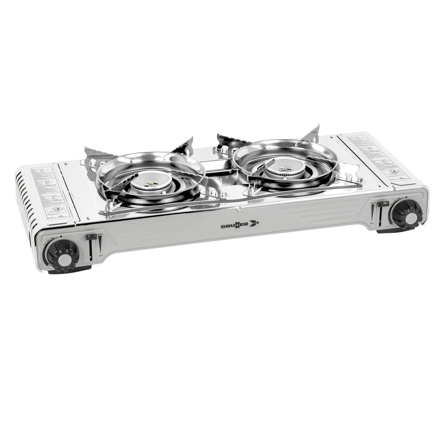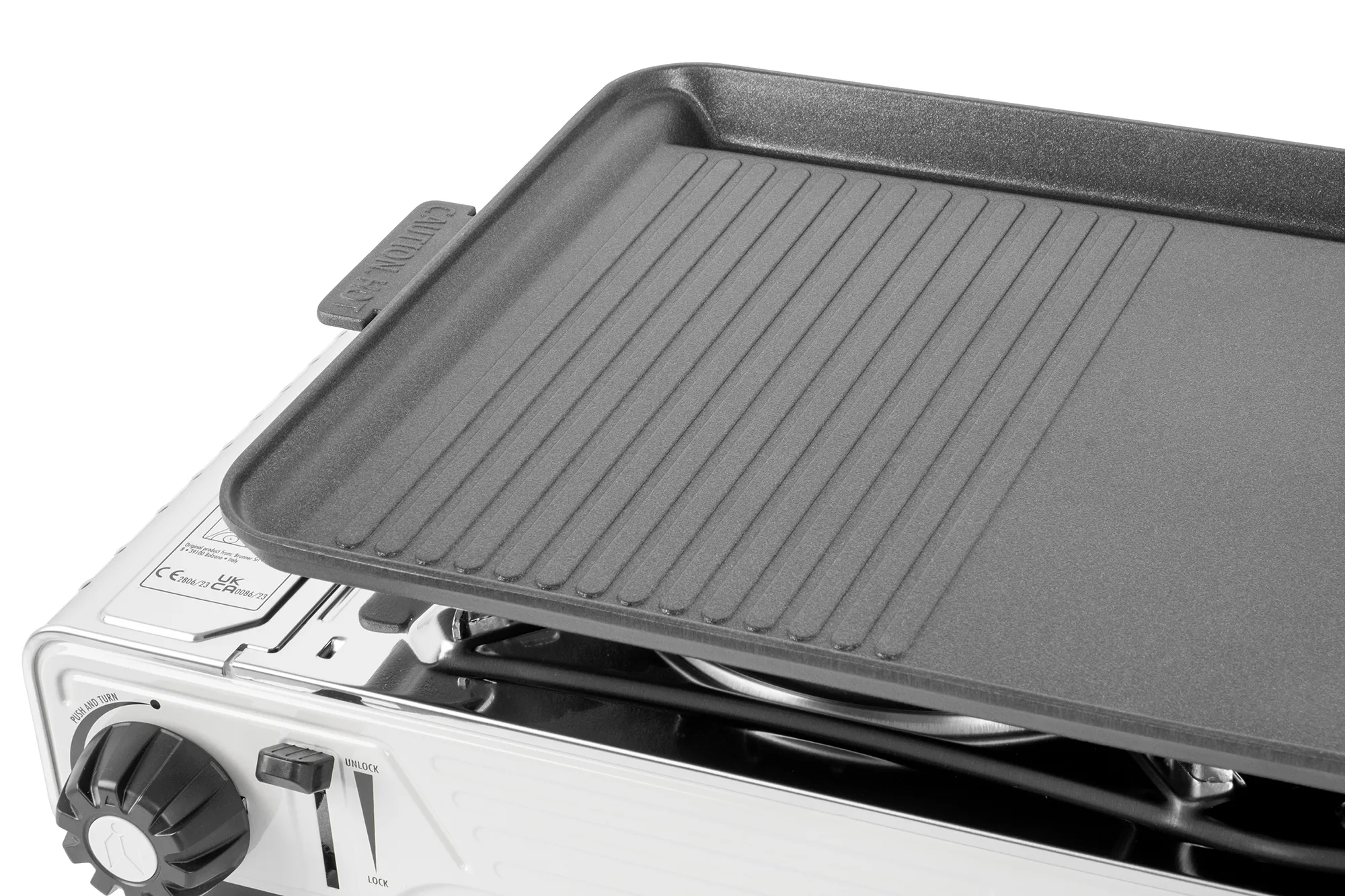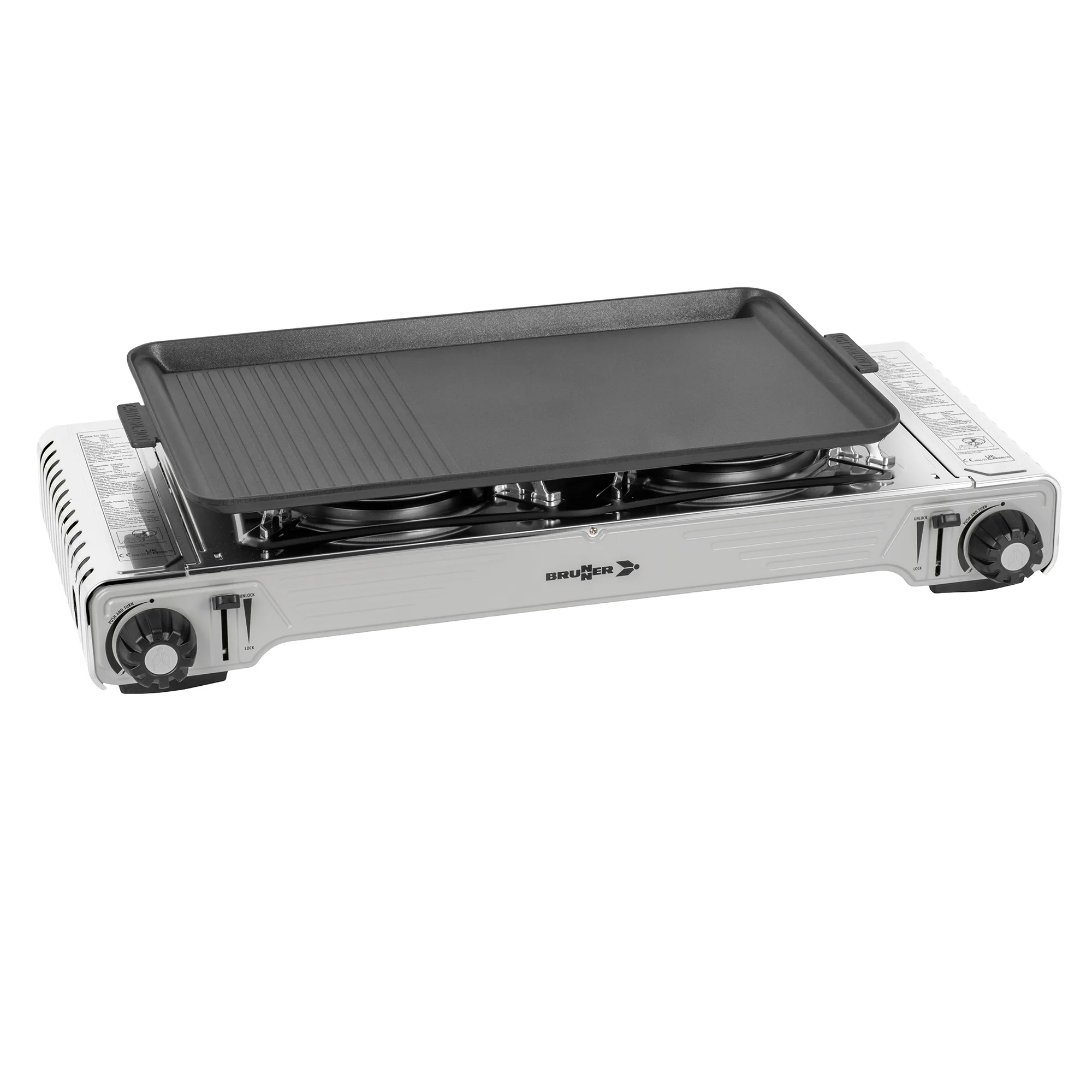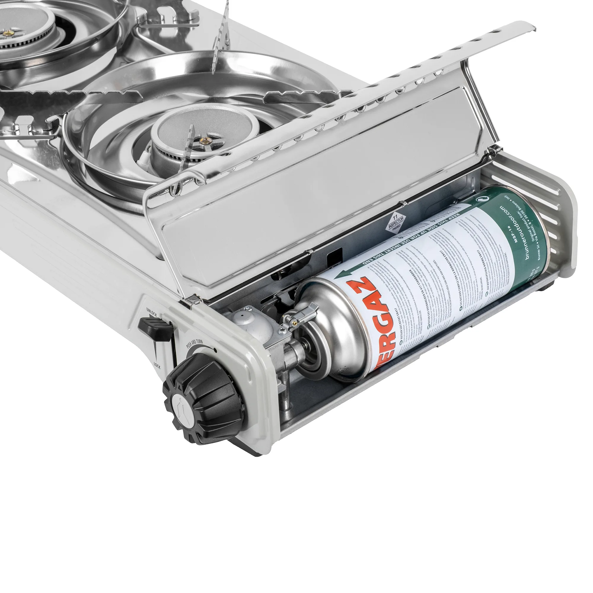 Pripremite više jela istovremeno bilo gdje u prirodi uz ovaj dvostruki plinski rešo sa ugrađenom roštilj pločom. Zahvaljujući snažnim plamenicima i praktičnom dizajnu, savršen je izbor za kampovanje, piknike ili kućnu terasu.